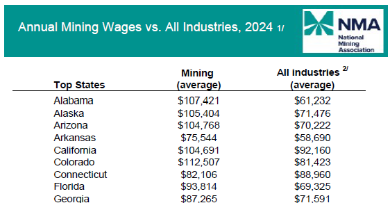 Statistics: Annual Mining Wages vs. All Industries, 2024